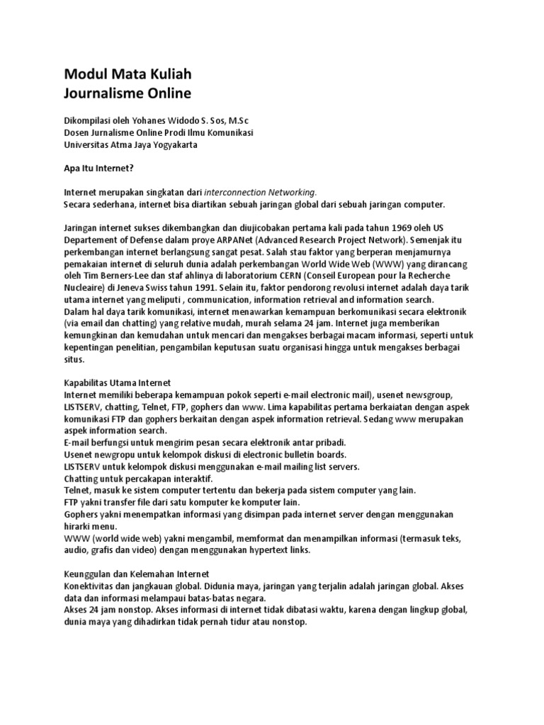 Modul Mata Kuliah Journalisme Online Ayo Menulis Fisip Uajy